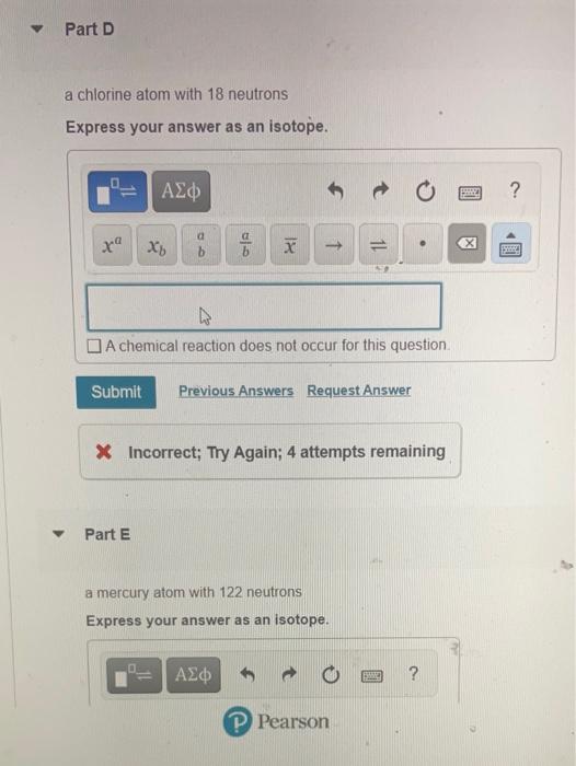 Solved V Part D A Chlorine Atom With 18 Neutrons Express Chegg Com